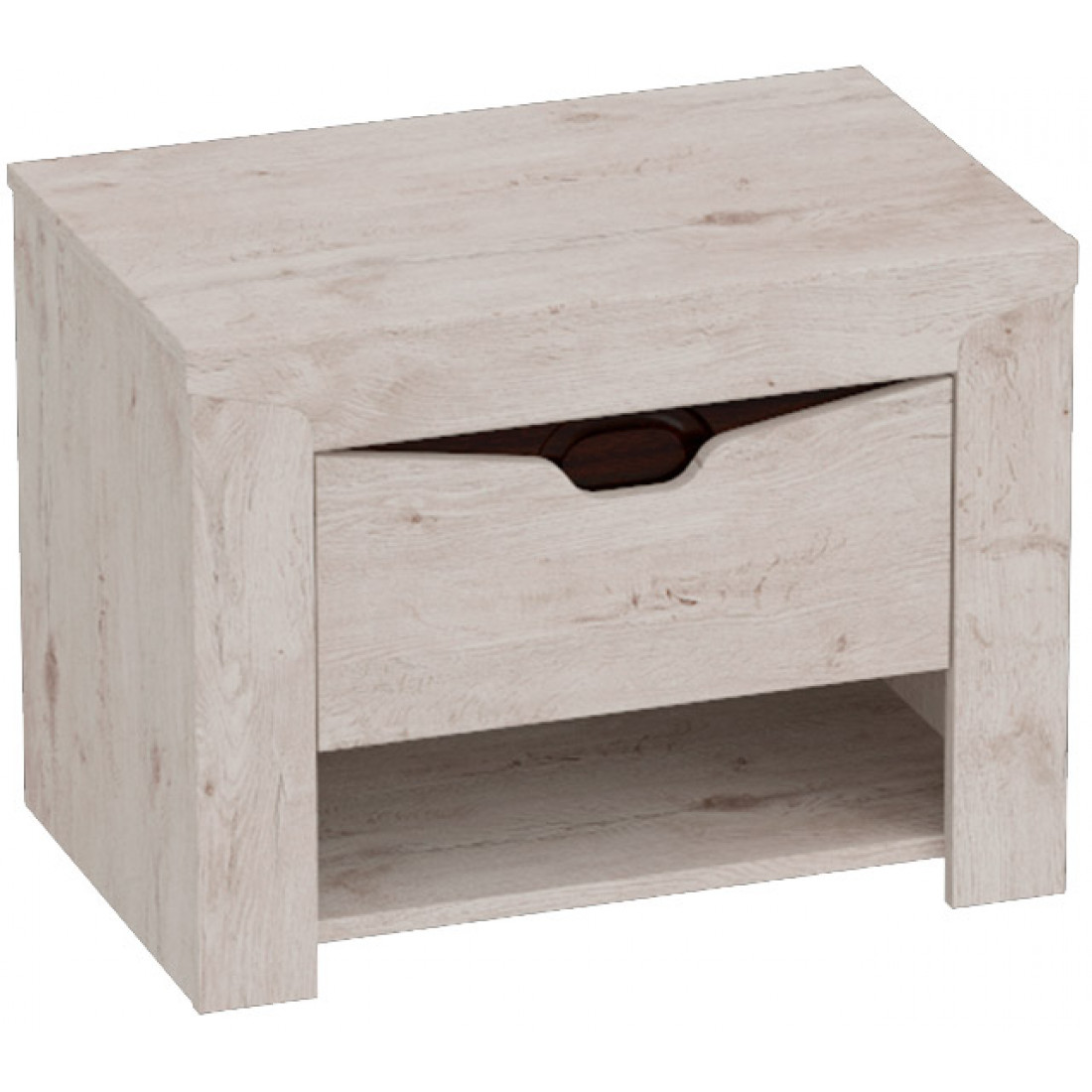 Прикроватная тумба из коллекции Соренто порадует ценителей лаконичных форм своими простыми, современными линиями и приятной светлой деревянной текстурой,создающей чувство покоя и комфорта в вашем доме. Выдвижной ящик поместит в себя множество полезных мелочей, которые должны быть под рукой.