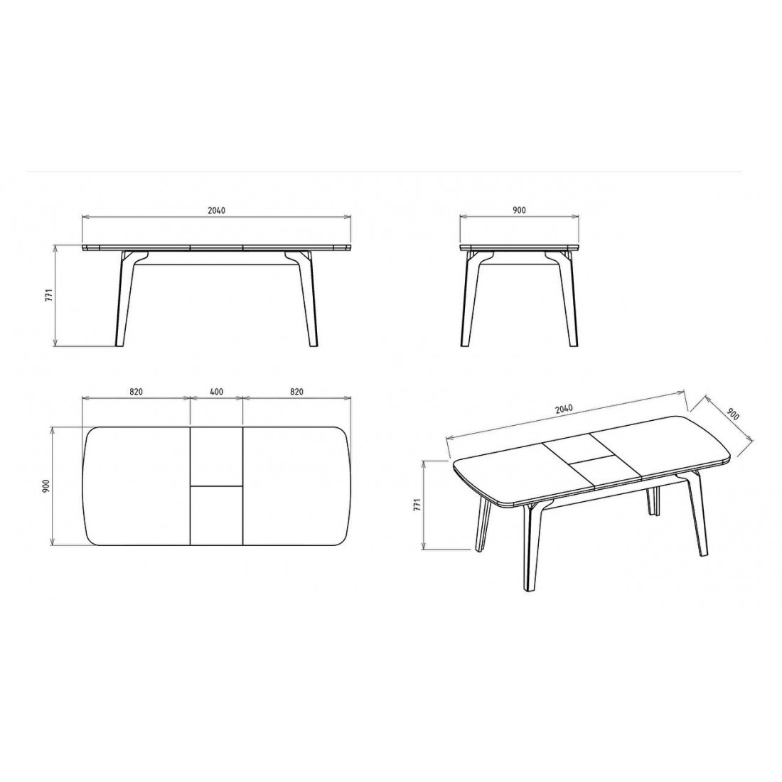 2040×900×771 мм