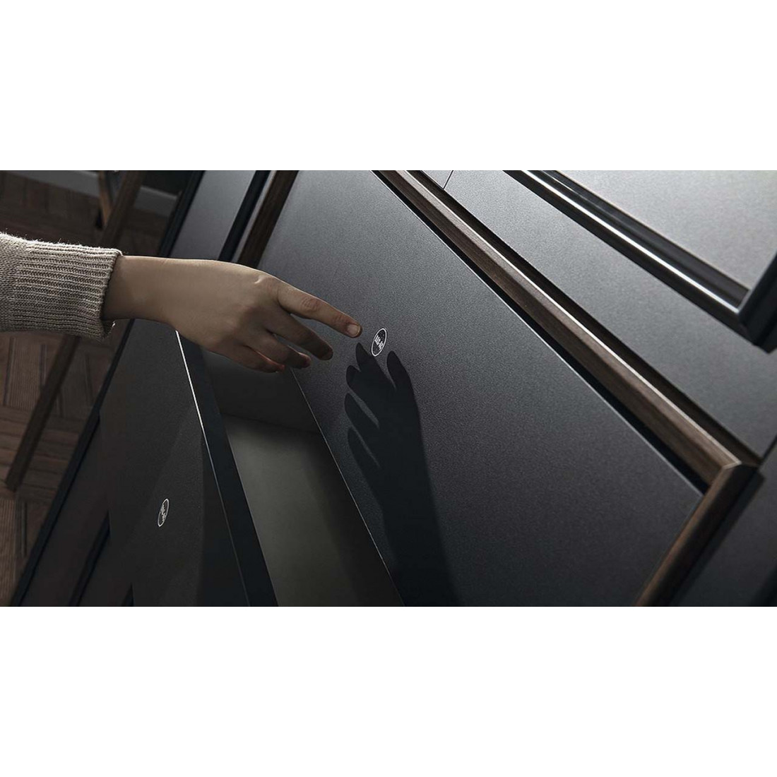 Визуальность и функциональность буфета была увеличена за счет применения сетки столовых приборов. Благодаря телескопической направляющей, расположенной во внутреннем ящике для столовых приборов, ящик можно полностью открыть, и таким образом можно удобно пользоваться.