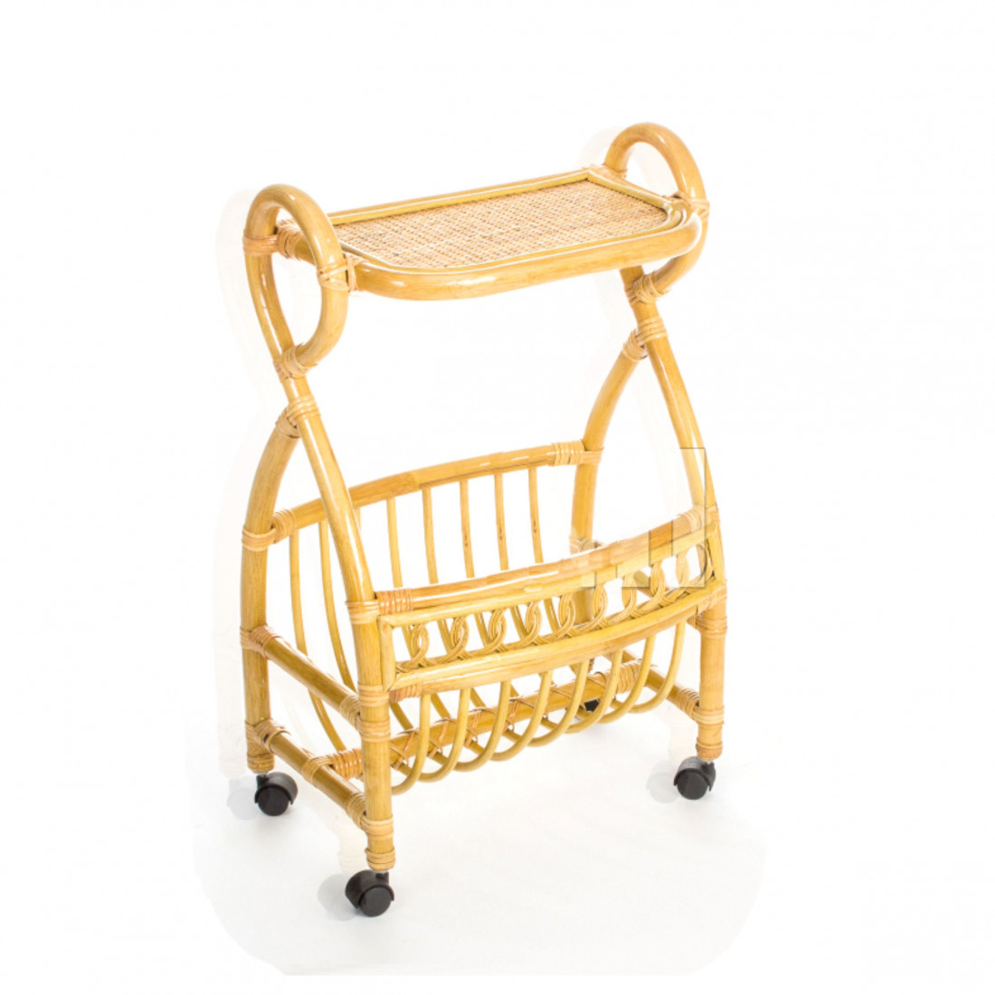 Столик с подставкой для газет на колесиках из натурального ротанга подойдет и для дачи, и в загородном доме и в любой квартире. Мебель из ротанга изготавливается вручную, ей не страшны перепады температуры.